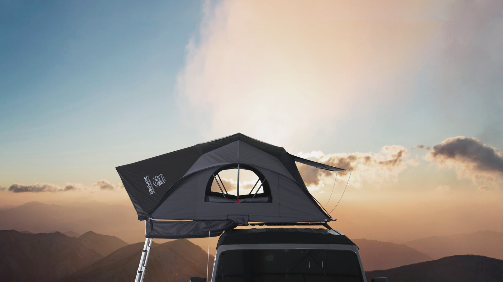 La X-Cover 2.0 est une tente de toit à coque hybride faite d'une double couche en fibre de verre (FRP) aérodynamique et légère.