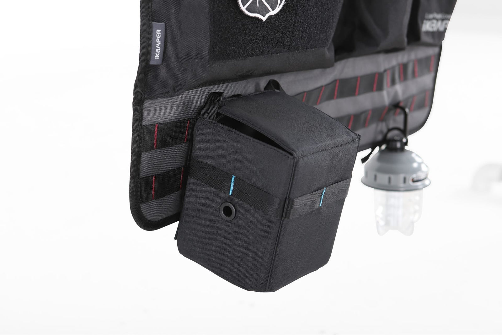 È possibile attaccare diverse toppe iKamper o altro al velcro in basso a sinistra del contenitore.