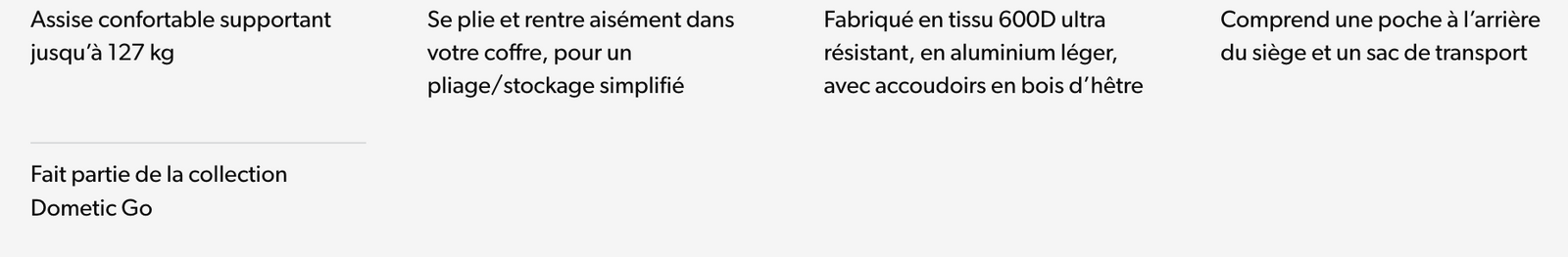 La chaise de camping Compact Camp Chair CMP C1 de Dometic offre une assise portable et confortable pour manger, lire, se divertir et simplement profiter des grands espaces.
