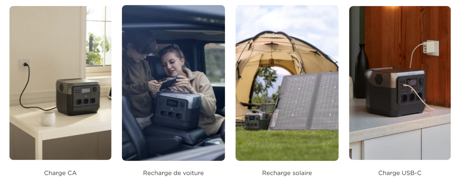 Avec quatre modes de charge différents pour la série RIVER 2, il existe une option de charge pour chaque occasion. De la charge CA rapide à la charge en voiture lorsque vous êtes en déplacement.