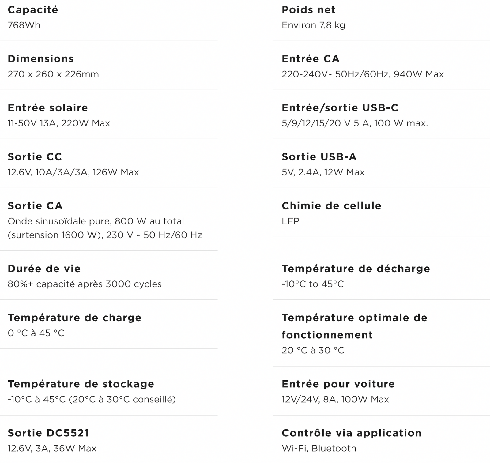 Avec au cœur une chimie de batterie LFP longue durée améliorée, vous pouvez charger et vider la RIVER 2 plus de 3 000 fois. Cela représente environ 10 ans d'utilisation quotidienne1et 6 fois plus que la moyenne du secteur. Avec les cellules LFP, la série RIVER 2 est sûre, durable et très efficace, même à des températures élevées.