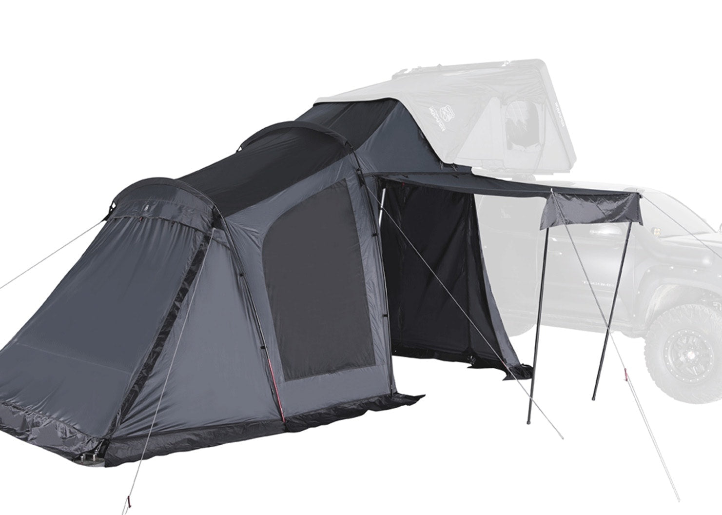 La tente annexe vous permet de gagner de l'espace de vie pour un plus grand confort. Elle est facile à mettre en place, et se fixe directement à votre Skycamp 3.0, Skycamp Mini 3.0 ou X-Cover 2.0. La construction 100% étanche et les moustiquaires sur toutes les ouvertures en font un accessoire parfait pour vos picnics à l'ombre ou sous la pluie.