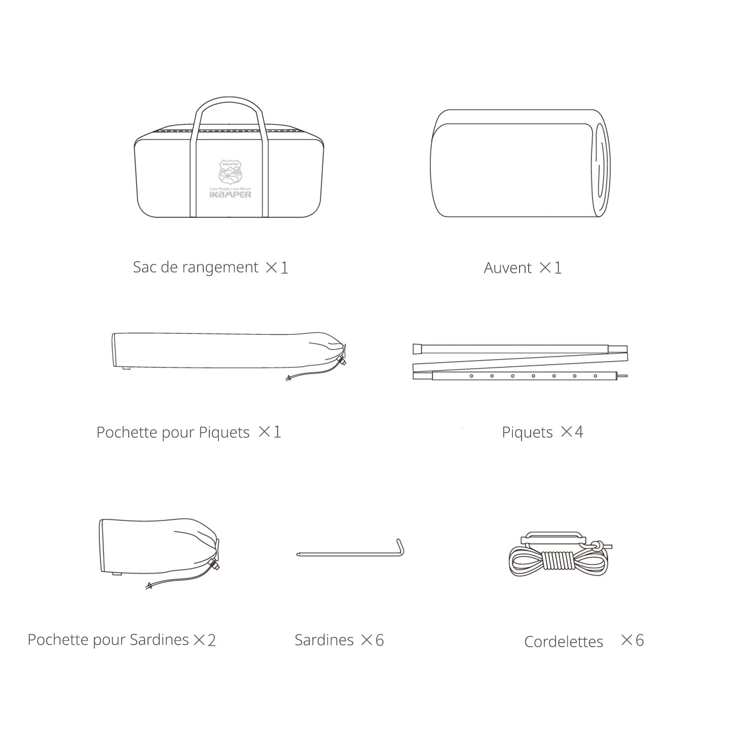 Les accessoires (piquets, tendeurs de corde et sardines) fournis avec celui-ci sont de très bonne qualité, aussi bien dans leur robustesse que dans leur efficacité.