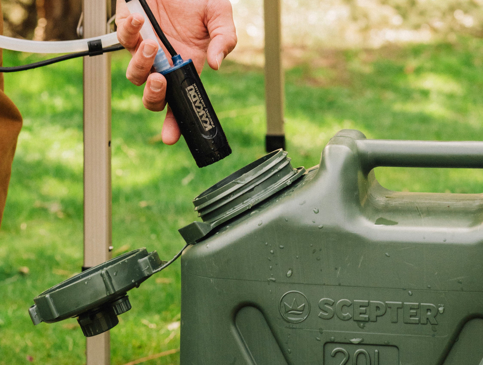 Une fois la cartouche de gaz solidement vissée, les tuyaux raccordés et l’appareil en marche, il vous suffit de plonger la crépine dans une source d’eau.