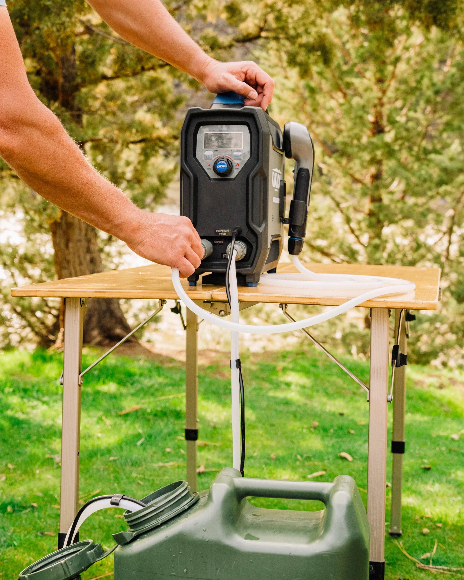 Compacte et légère, ne pesant que 7kg, la douche portable Kakadu est conçue pour être votre compagnon de douche idéal lors de vos aventures en plein air. Que vous campiez dans les montagnes, que vous fassiez du trekking dans la forêt ou que vous profitiez d'un festival en plein air, cette douche vous permet de rester propre et rafraîchi où que vous soyez. Vous pouvez également l’utiliser pour laver la vaisselle par exemple.