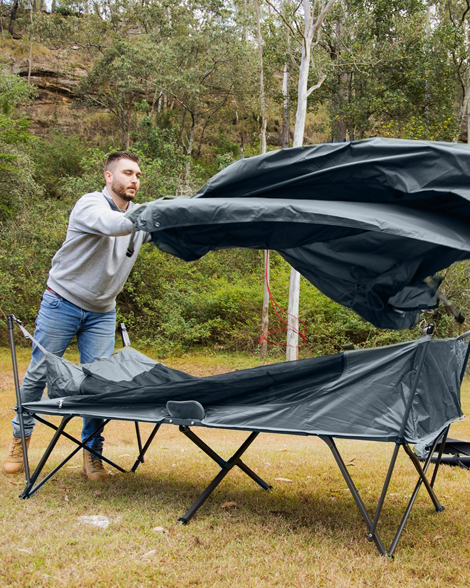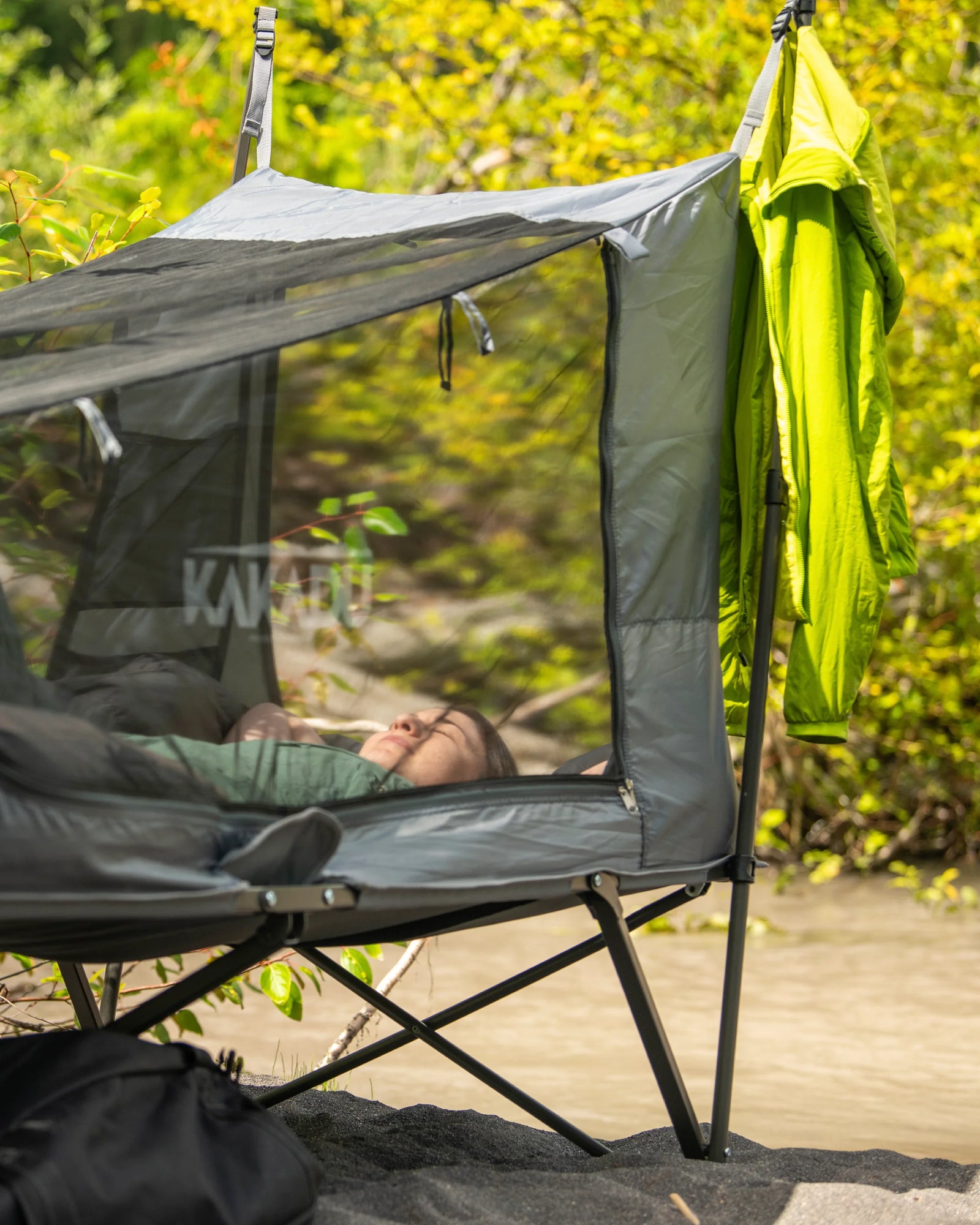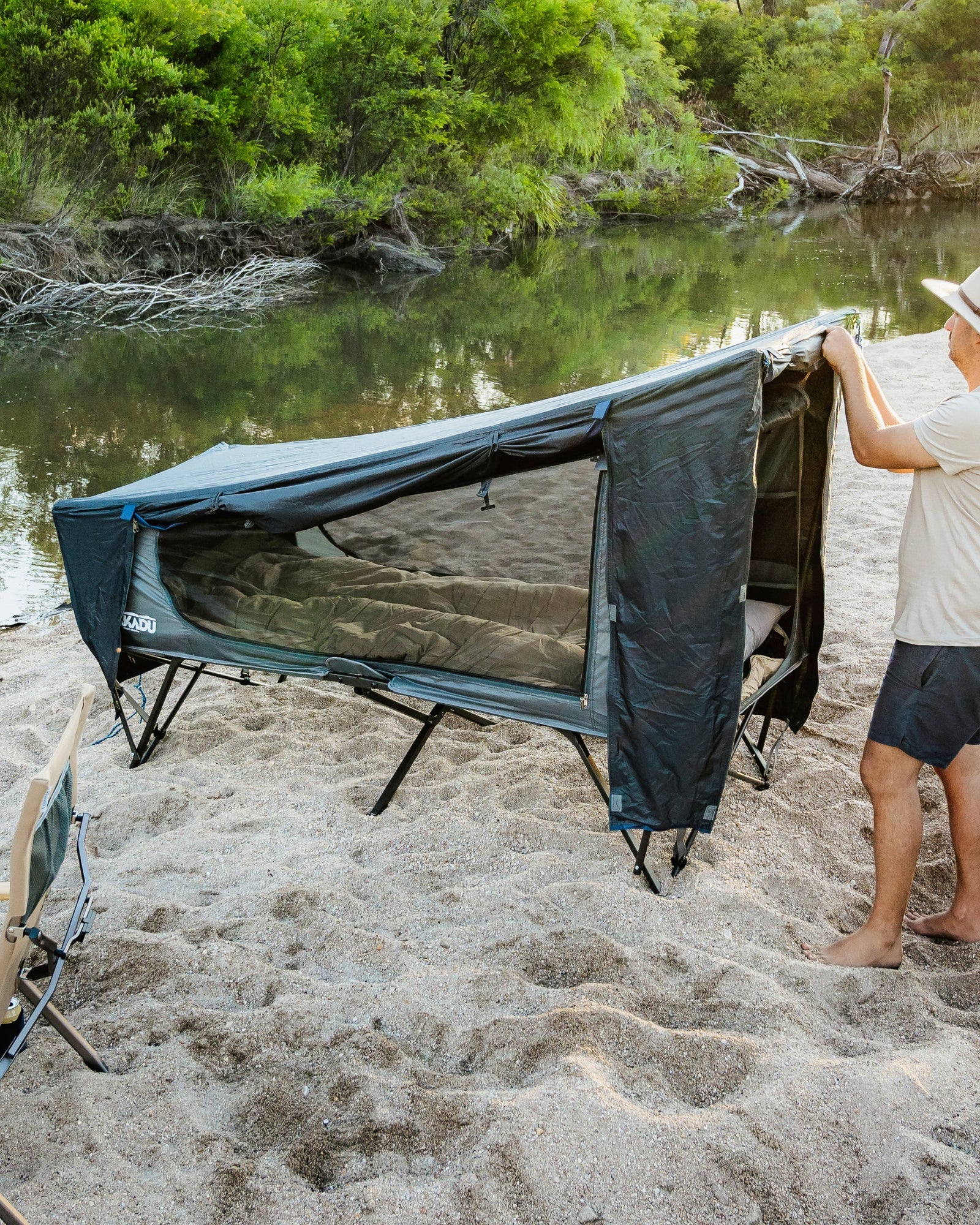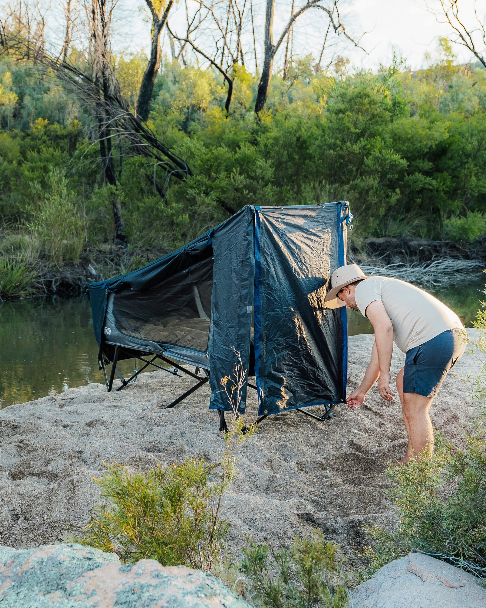 Le lit de camp BlockOut® de Kakadu est un abri de haute qualité, compact et facile à monter. La technologie BlockOut® de Kakadu réduit la température intérieure jusqu'à 7 degrés et bloque jusqu'à 95 % de la lumière. L'armature de la tente est facile à plier et ne nécessite aucun assemblage, ce qui permet un montage sans souci. L'intérieur de la tente est constitué d'une maille No-See-Um ultrafine qui améliore la ventilation et empêche les insectes de pénétrer dans la tente. Le double toit de 3000 mm d'épaisseur, résistant à l'eau, vous permettra de rester au sec par mauvais temps. Deux mâts d'auvent sont inclus pour étendre votre installation avec de multiples options d'auvent sur le devant et sur les côtés.