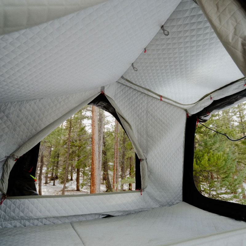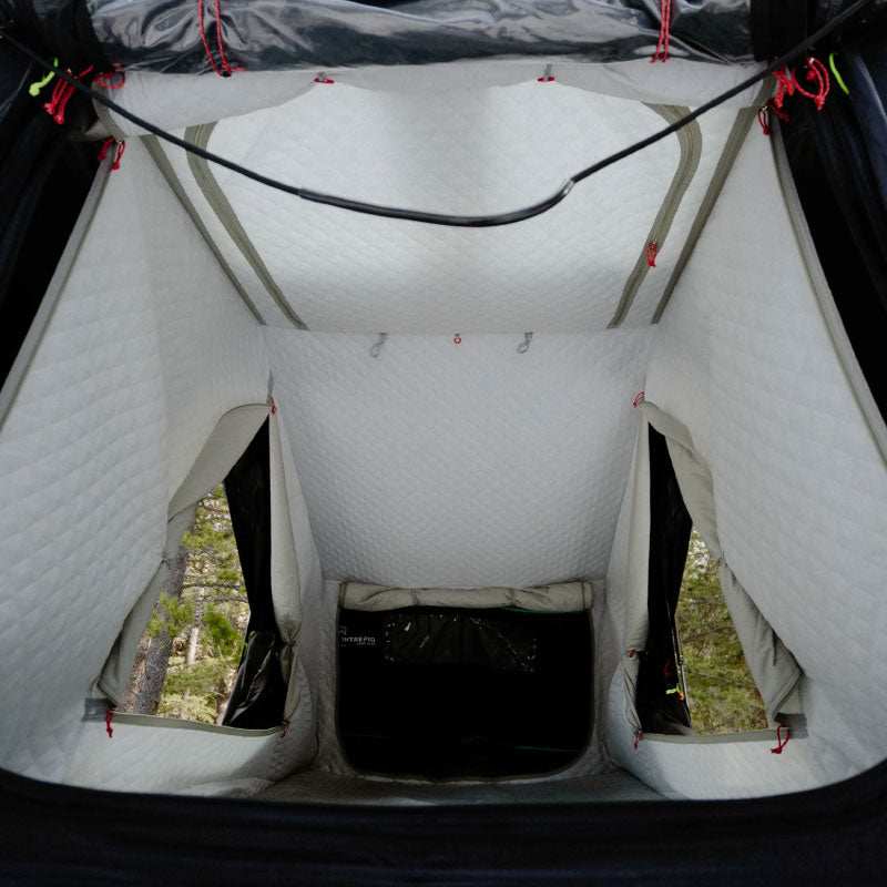 Toile d’Isolation Hiver compatible avec la Tente de Toit Intrepid Geo 2.5 conçue pour augmenter la chaleur et le confort lorsque les températures chutent. Elle se fixe facilement à l'intérieur de la tente pour réduire les pertes de chaleur, stabiliser la température et minimiser les courants d’air. Idéale pour les séjours en saison froide.